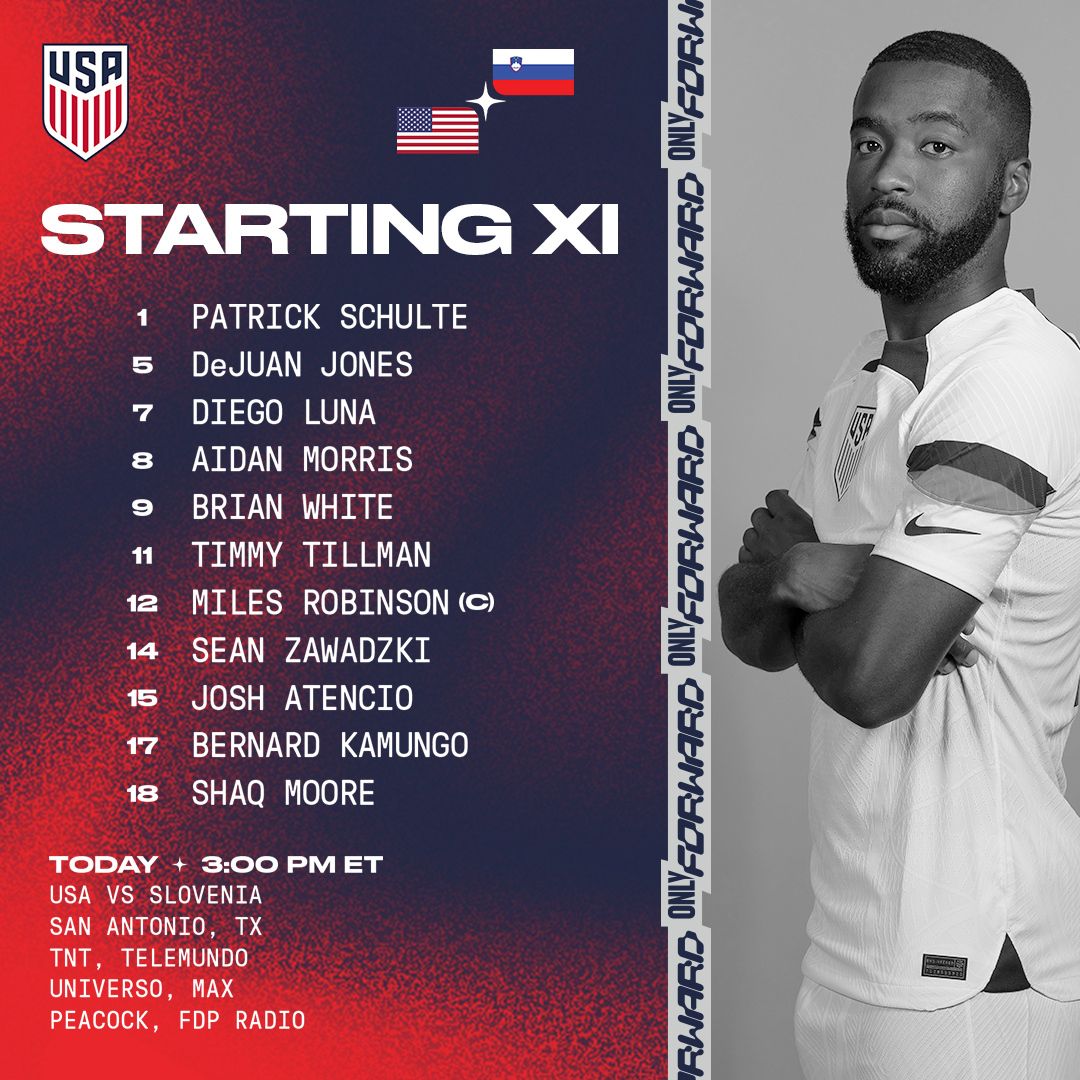 En el minuto 61 el técnico estadounidense hizo cambios sacó del juego a Moore, Atencio, White y Kamungo porque ingresaron Tolkin, McGlynn, McGuire y Bajraktarevic. Y en el minuto 89 ingresó Jackson por Tilman.