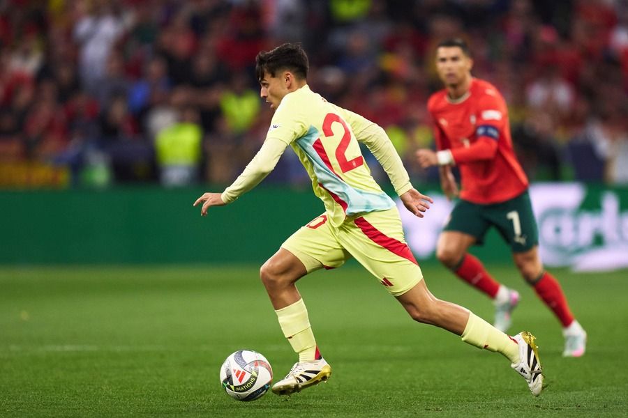 El esquema presentado por Roberto Martínez, entrenador de Portugal, para afianzar la segunda UEFA Nations League para los portugueses, fue ceder la posesión del balón a España, pero con un imperial Nuno Mendes que puso respeto y orden en la zaga de Portugal, logró detener el ímpetu de Yamine Lamal y Nico Williams que fueron desdibujados hoy en el ataque de España.